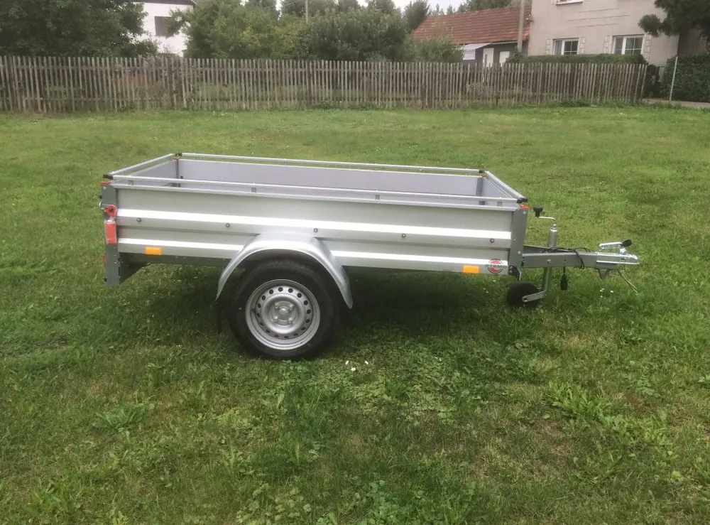 Jednonápravový nebržděný valník s koly mimo ložnou plochu. Celková hmotnost 750 kg, užitečné zatížení 615 kg, kola 13"".Ložná plocha 201x108 cm, bočnice 33 cm - galvanicky upravené (zinek-hliník).